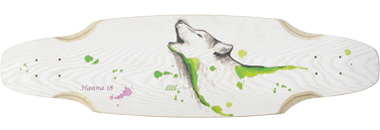 Megjegyzés: a képen látható longboard egyedi. Ha van elképzelésed róla, milyen legyen a Te deszkád, telefonálj, vagy írj e-mailt. A kerék és a felfüggesztés igény szerint választható.A képen látható deszka grafikája a tulajdonos saját munkája |